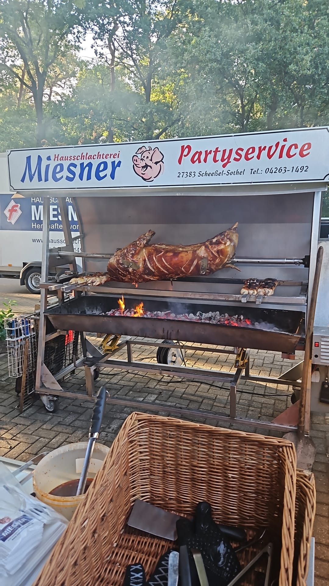 Ideal ab 50 Personen: Wir grillen das Spanferkel live bei Ihnen vor Ort, am offenen Feuer – saftig, knusprig, unverwechselbar.